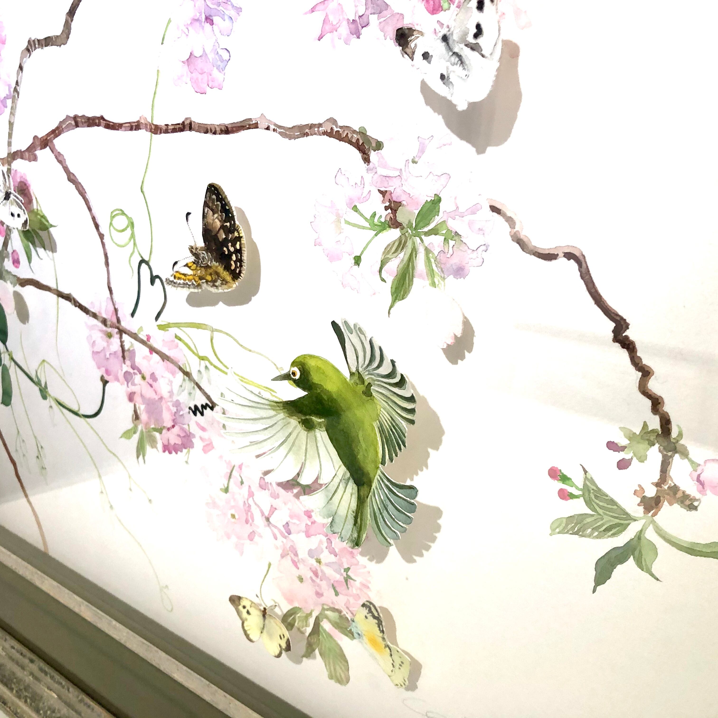 Work Title: Double Cherry blossoms and Japanese White-eyeⅠ