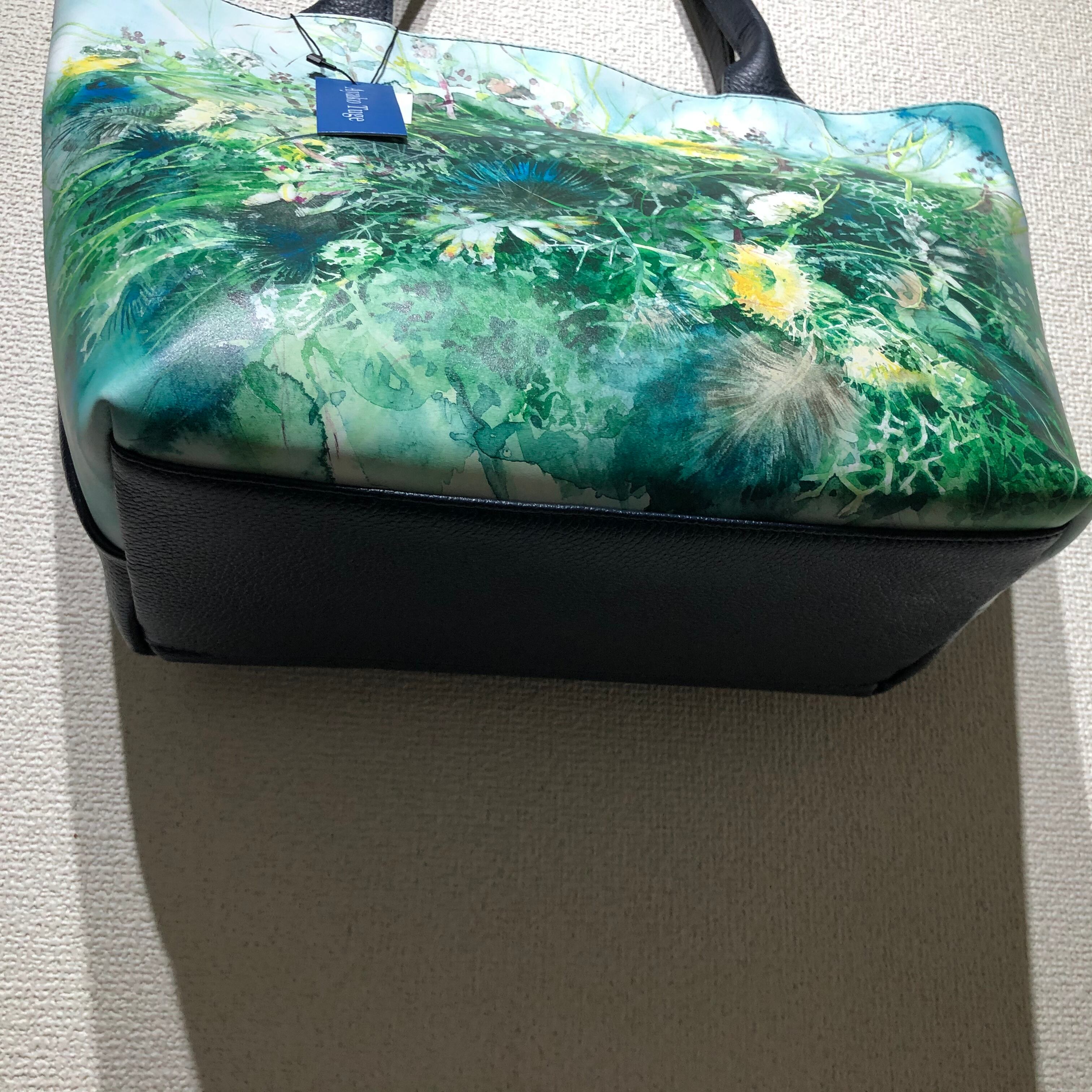 ラスト1点 レガロ 牛革 ターコイズボタニカルトートバック AT-0200