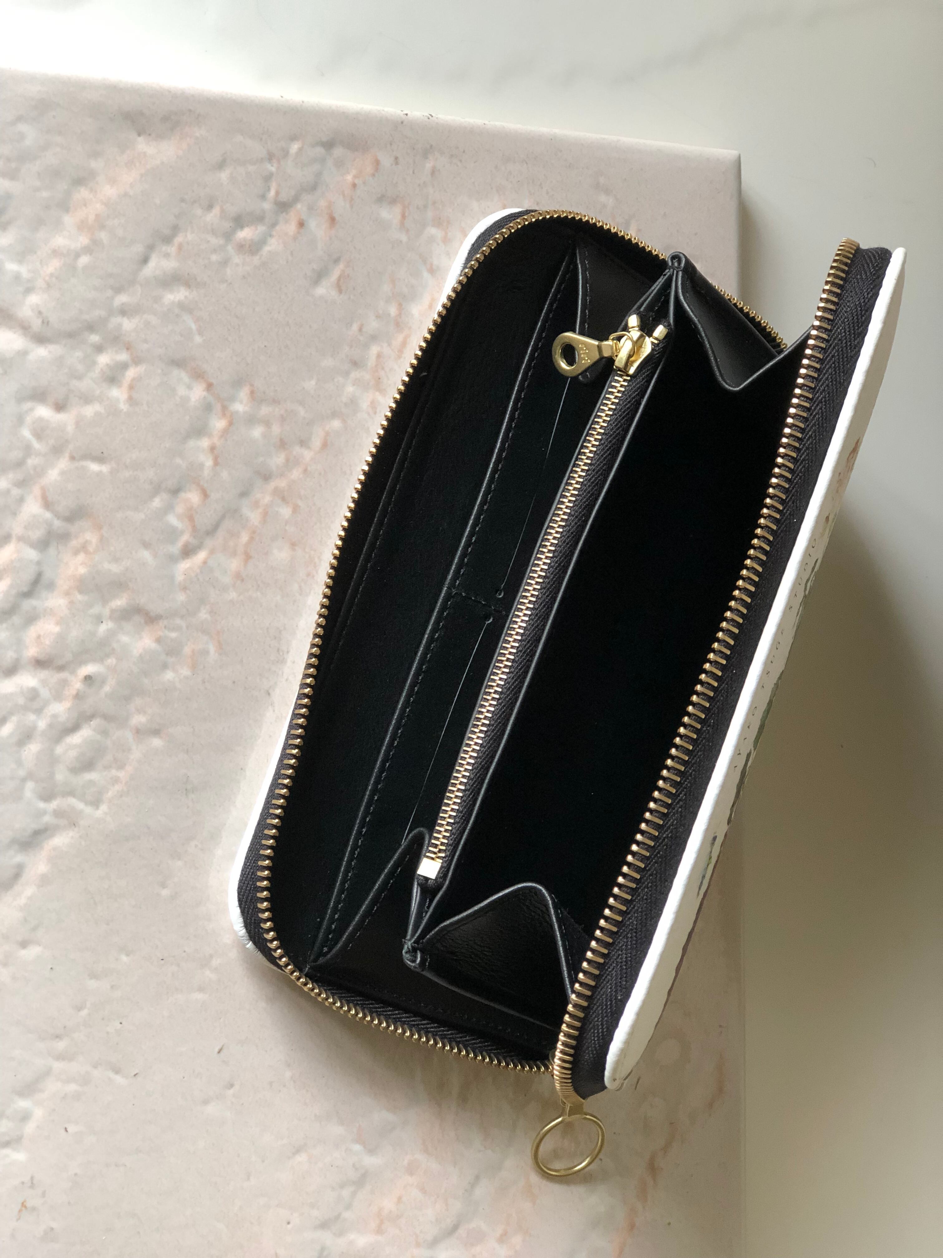 クラシックなシェイプのクラッチパースに丈夫なジップを使用し、大切な小物をしっかりと守ります。収容力のあるこのスタイリッシュな本格オリジナルクラッチ財布に、オリジナル水彩画をプリントしてお届けします。