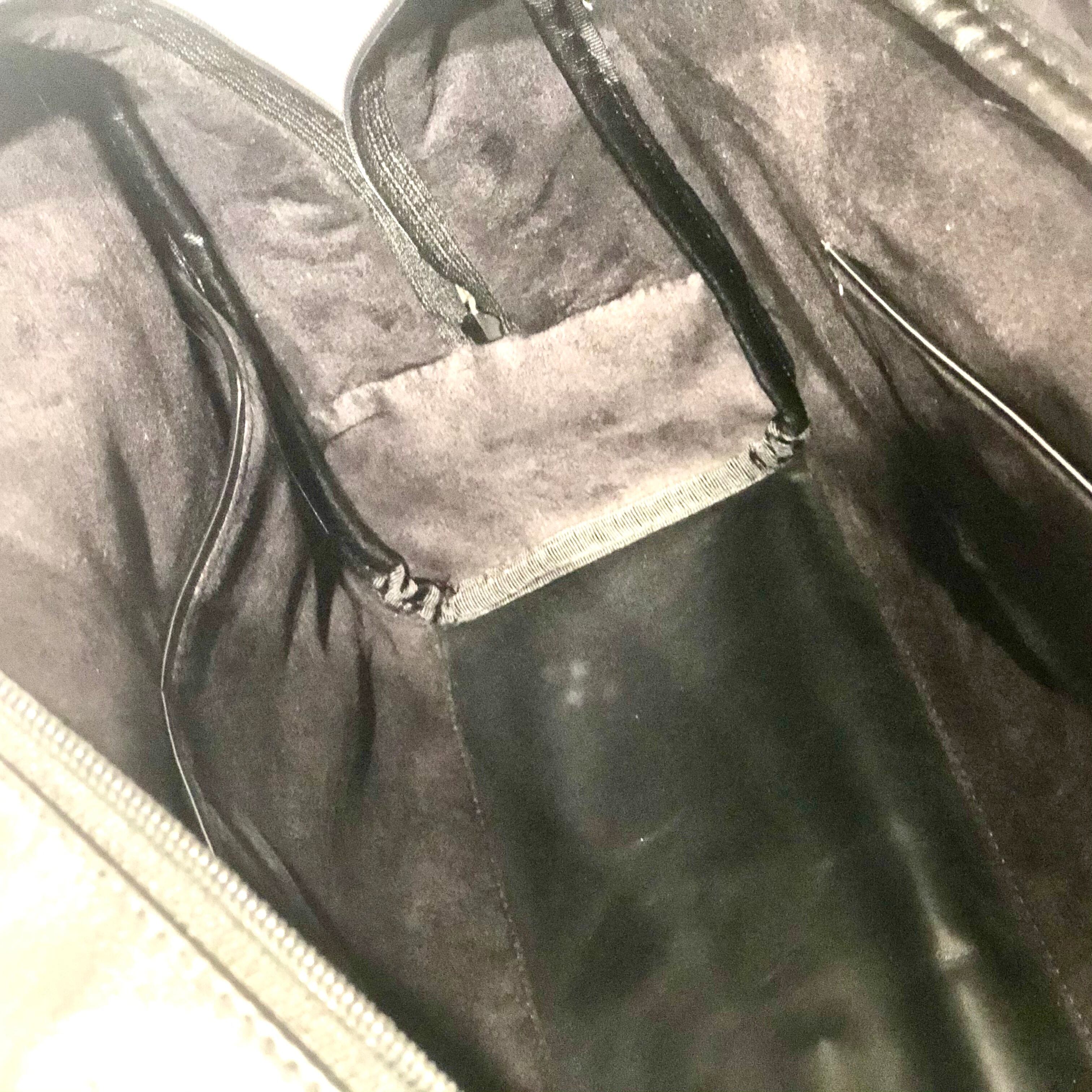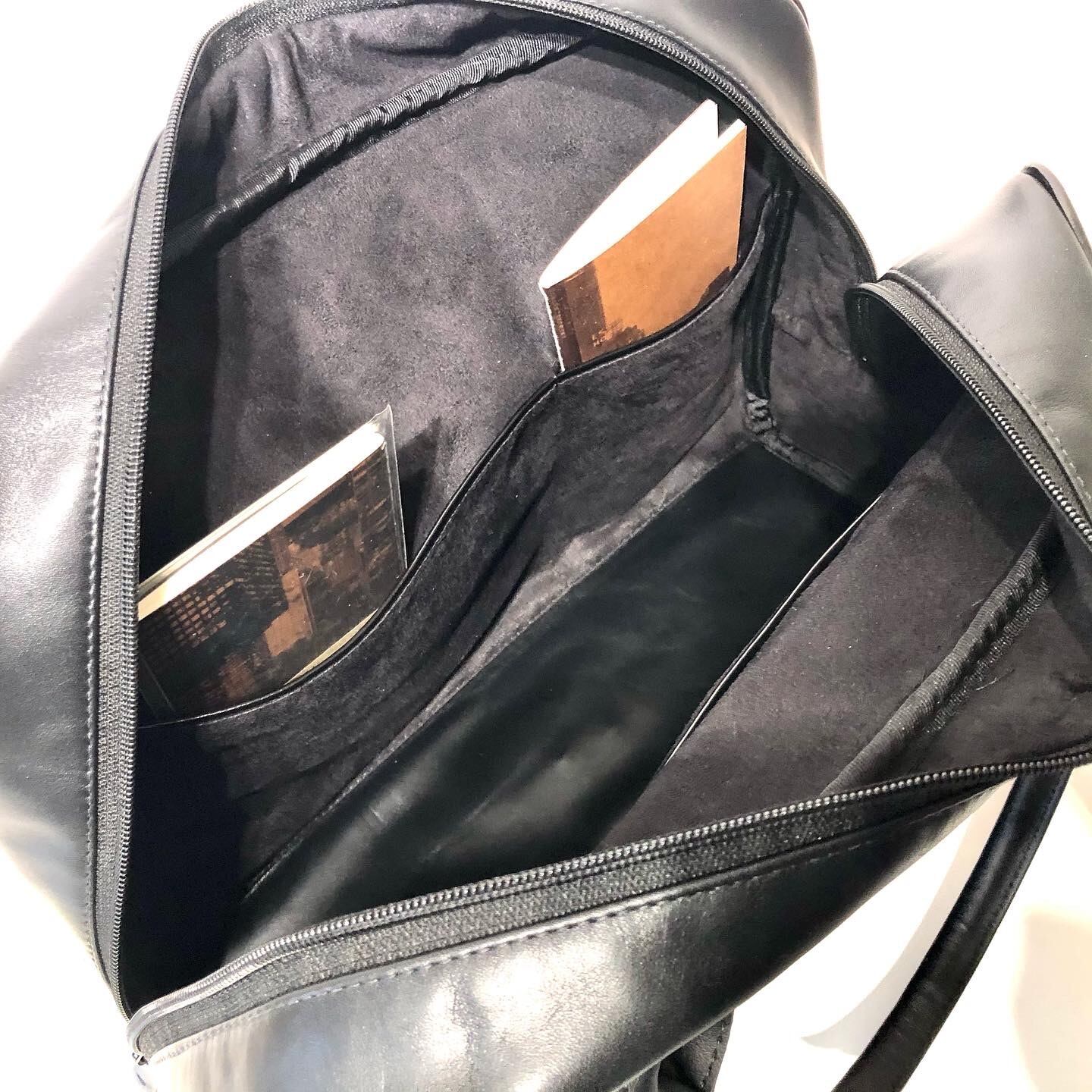 バッグ内側には2つの開いたポケットと、その反対側にはもう1つ開いたポケットがあります。裏地は防水加工生地を使っています。バッグの底は、レザーとなります。