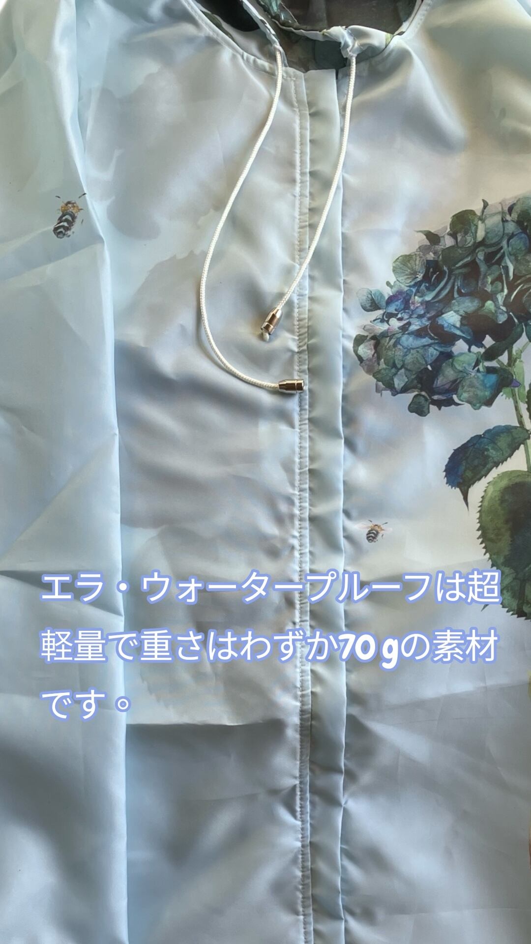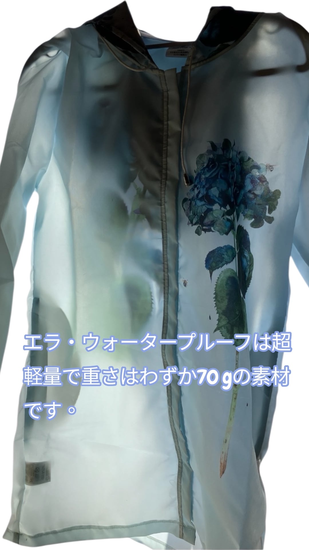 エラ・ウォータープルーフは超軽量で重さはわずか70 gの素材です。