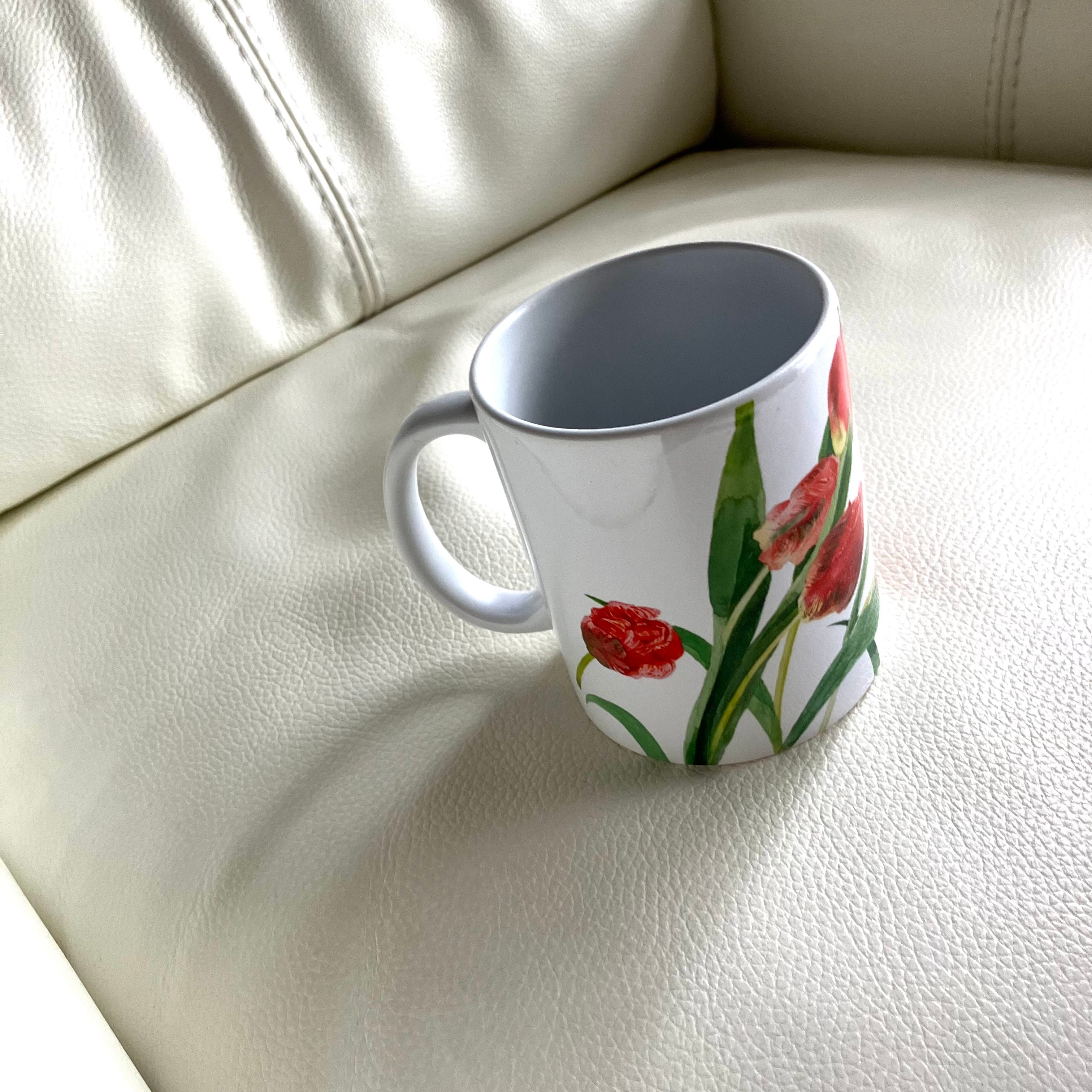【受注生産】赤いロココチューリップとモンシロチョウ 6個セットボーンチャイナマグカップ